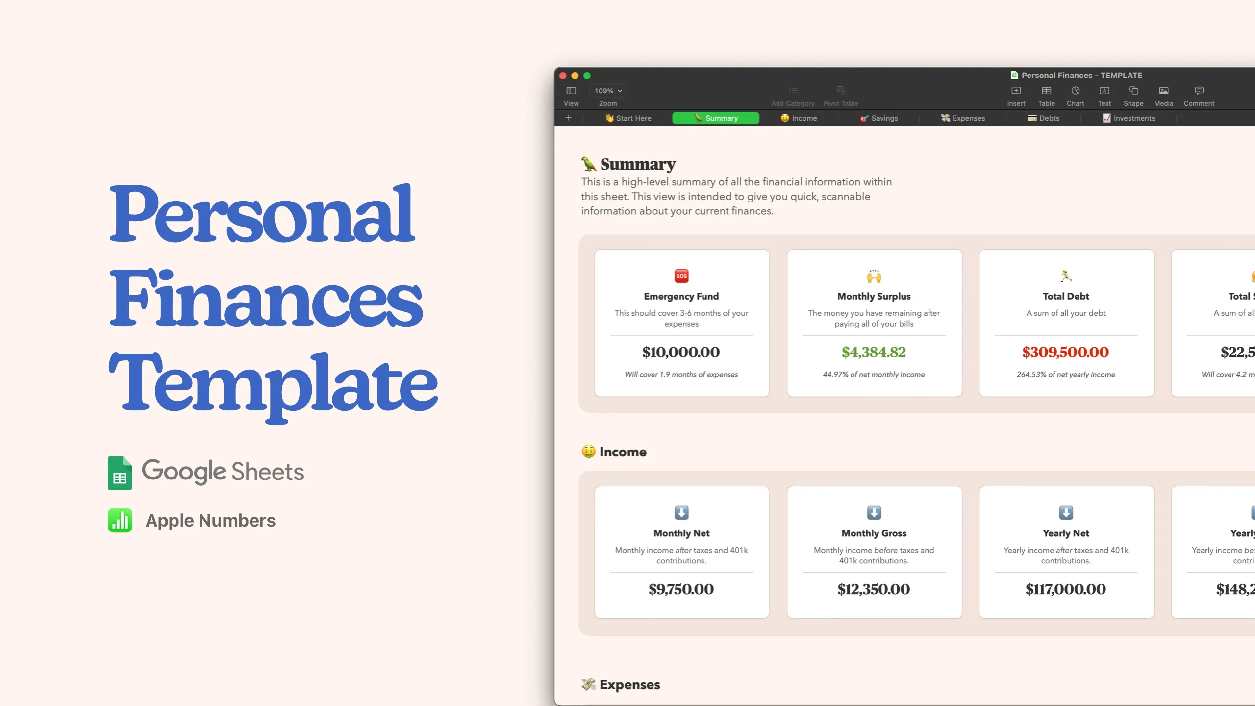 This Personal Finances Template is designed for non-financial experts. This spreadsheet allows you to easily understand and track your income, savings, and how your money is being spent.